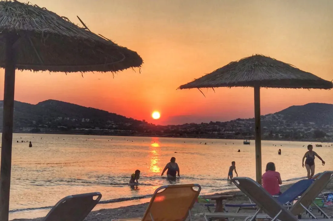 The natural beach of Palaia Fokaia boasts crystal-clear turquoise waters, offering a tranquil environment for swimmers seeking a peaceful sea. Along the longest stretch of Palaia Fokaia's coastline, you'll find taverns that allow diners to enjoy their meals with a view of the boundless blue of the Saronic Sea.